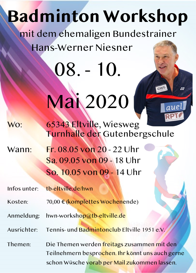 Auch dieses Jahr veranstalten wir wieder einen Workshop mit dem ehemaligen Bundestrainer Hans-Werner Niesner.