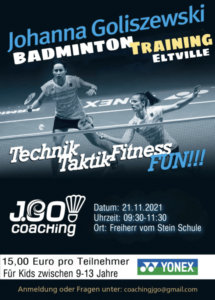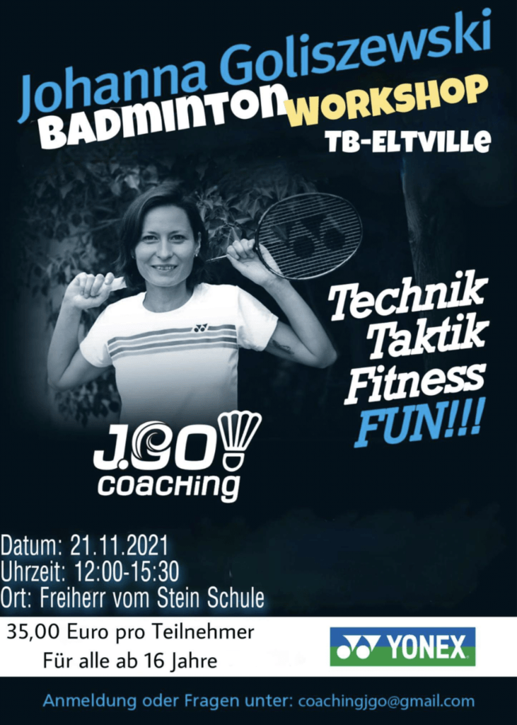 Am 21.11. führen wir zusammen mit Bundesligaspielerin, ehemaliger Nationalspielerin und U23-Bundestrainerin Johanna Goliszewski jeweils einen Trainingsworkshop für Kinder und Erwachsene durch.