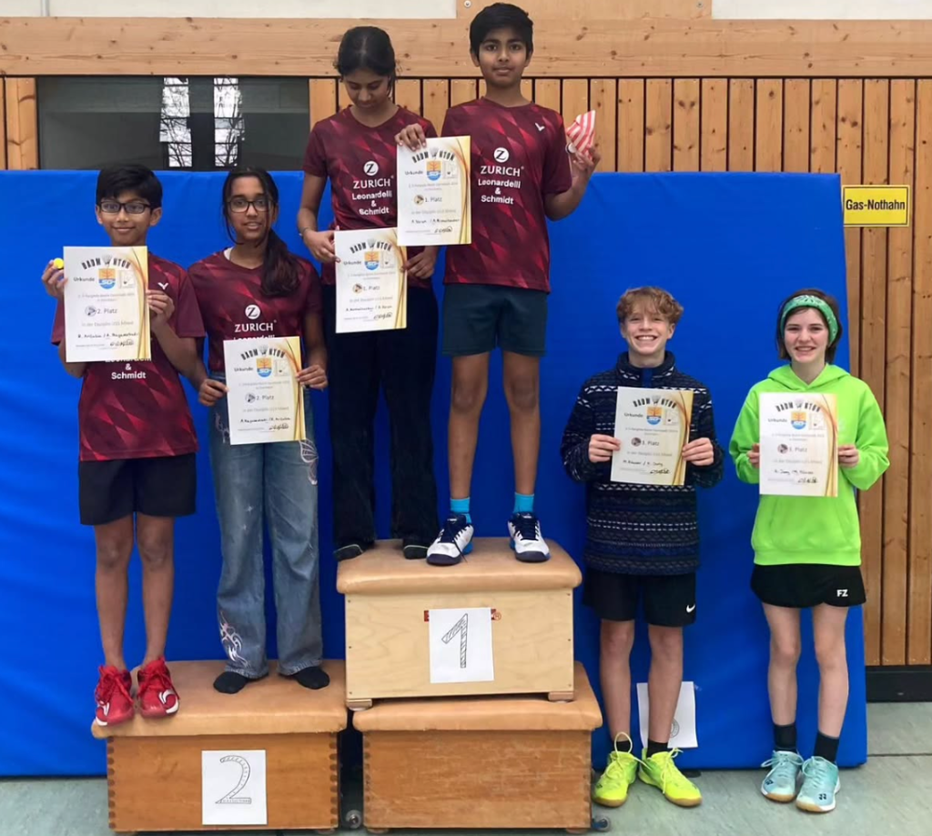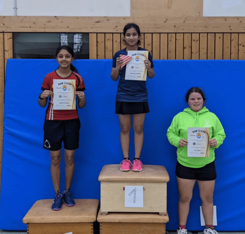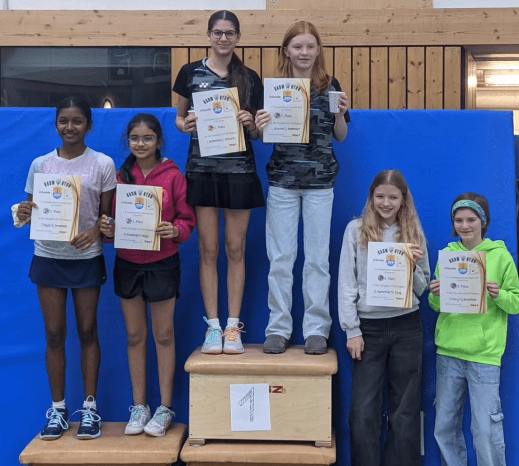 Im Mädcheneinzel U13 erspielte sich Katharina einen hervorragenden 2. Platz. Im Mixed der U15 erreichte sie zusammen mit Michel den 3. Platz, was gerade aufgrund der höheren Altersgruppe einen tollen Erfolg darstellt. Mit einer vereinsfremden Partnerin erreichte sie im Damendoppel in der ebenfalls höheren Altersklasse U15 ebenfalls einen 3. Platz.