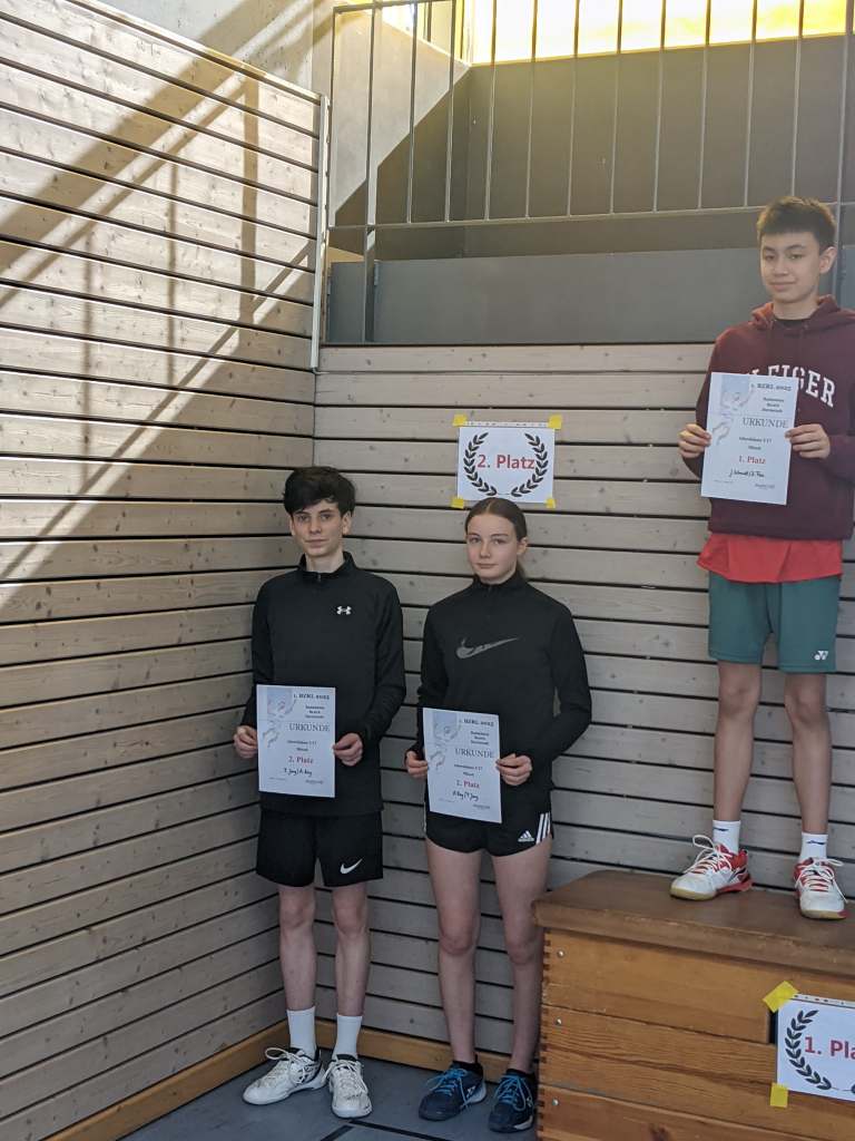 Am Sonntag folgten die Mixed-Wettbewerbe. Vier Paarungen mit Eltviller Athleten traten an, drei davon in Kombination mit Partnern aus anderen Vereinen des Badminton-Bezirks Wiesbaden. Sophia Gabriel spielte mit Advit Sharma (1. Wiesbadener BC) und gewann ihr erstes Spiel in drei Sätzen gegen die Favoriten. Mit einem weiteren Sieg sicherten sie sich den ersten Platz! In der Altersklasse U17 belegten Ayla Roy und Felix Jung mit zwei Siegen und einer knappen Drei-Satz-Niederlage den zweiten Platz in ihrer 4er Gruppe. In der Altersklasse U15 traten die trotz ihres jungen Alters bereits turniererfahrene Katharina Jung gemeinsam mit Elias Rais (TV Wicker) an. Allerdings zeigte sich, dass die fehlende gemeinsame Erfahrung eine Rolle spielte. Im ersten Spiel trafen sie auf Olivia Hoffmann (PSV GW Wiesbaden) und Moritz Reil, die das Spiel deutlich in zwei Sätzen gewannen. Trotz erst zweier gemeinsamer Turniere bewiesen Moritz und Olivia großen Teamgeist und starken Siegeswillen, was sie am Ende bis auf den ersten Platz führte! Besonders hervorzuheben ist das knappe Drei-Satz-Halbfinale, welches die beiden trotz Rückstand noch für sich entscheiden konnten. Katharina und Elias wurden ihrem Setzplatz diesmal leider nicht gerecht und belegten den siebten Platz.