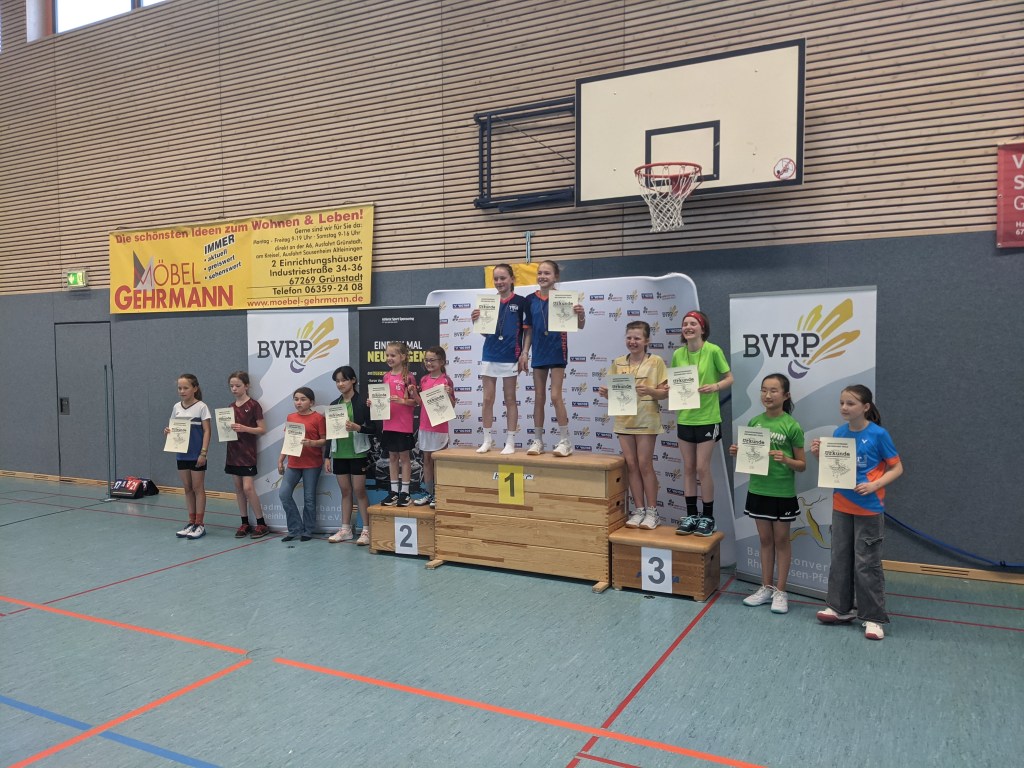 Am Samstag erspielte sich Katharina Jung souverän den ersten Platz im Mädcheneinzel U13. Nur im ersten Satz des Finales, das sie letztlich mit 21:18 und 21:10 für sich entscheiden konnte, wurde es kurzzeitig spannend. Anschließend trat sie im Doppel gemeinsam mit ihrer ebenfalls freigestellten Partnerin Isabella Aust vom 1. BCW Hütschenhausen an. Das erste Spiel verloren die beiden knapp im dritten Satz, sicherten sich danach jedoch im kleinen Finale den dritten Platz!
