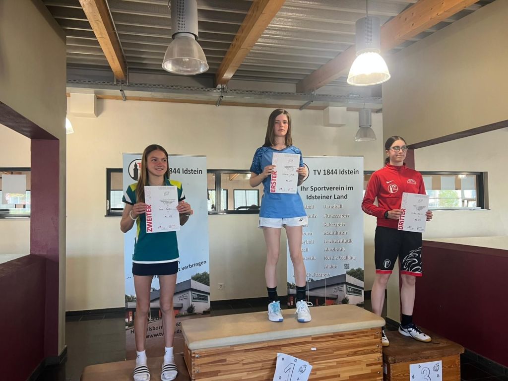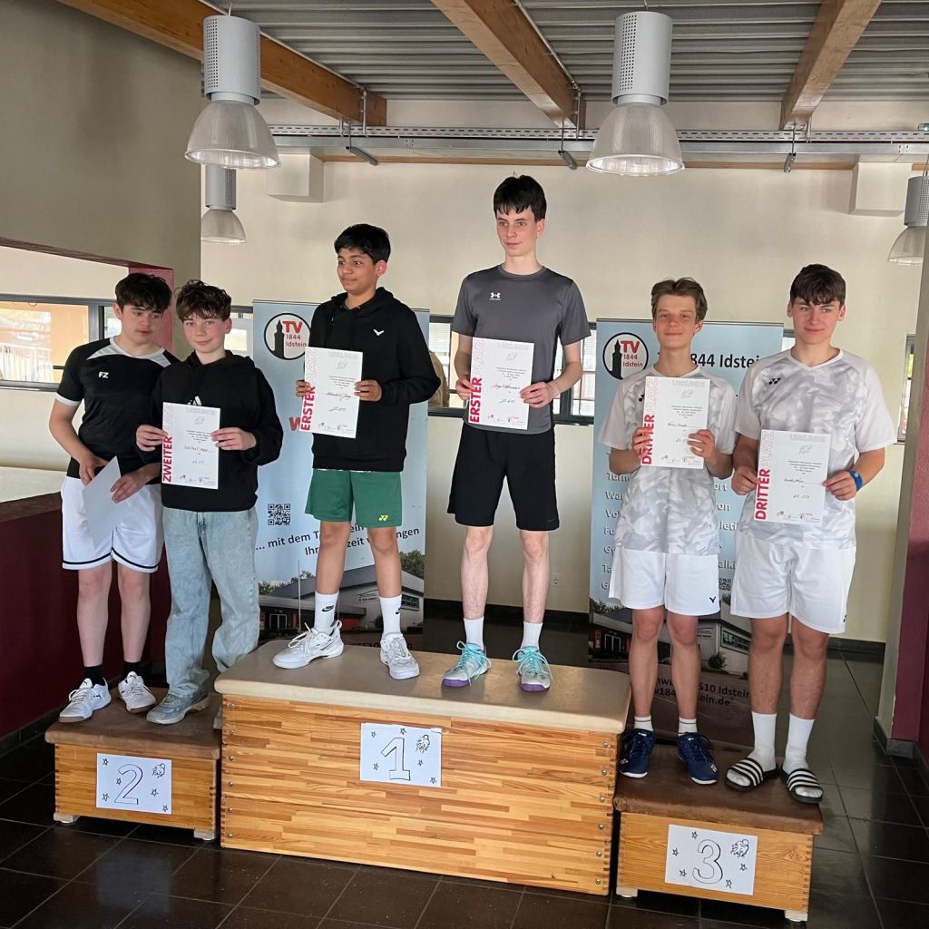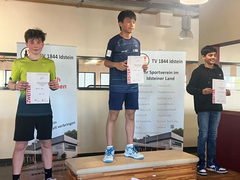 Im Jungeneinzel U17 musste sich Moritz im Finale in zwei, doch relativ deutlichen Sätzen geschlagen geben und belegte am Ende den zweiten Platz. Im Mädcheneinzel U17 holte sich Katharina Jung souverän den ersten Platz und machte im Halbfinale gegen ihre Gegnerin aus Idstein auch die Niederlage aus der Mini-U15-Runde wieder wett.